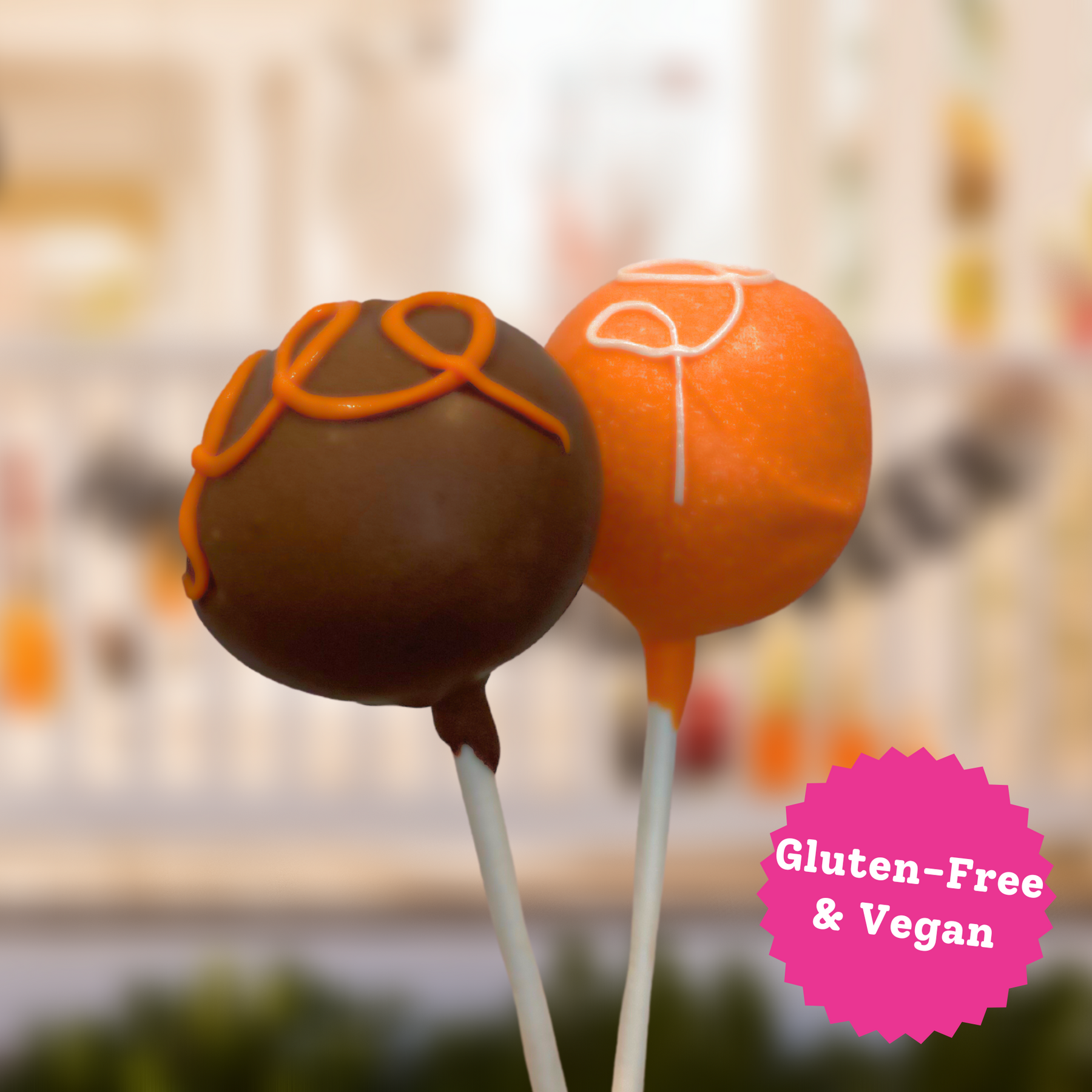 Homemade cake hand-blended with frosting and dipped in a candy coating, our cakepops are moist, sweet, and positively delicious. And the best part is, they're Gluten-FREE & Vegan!