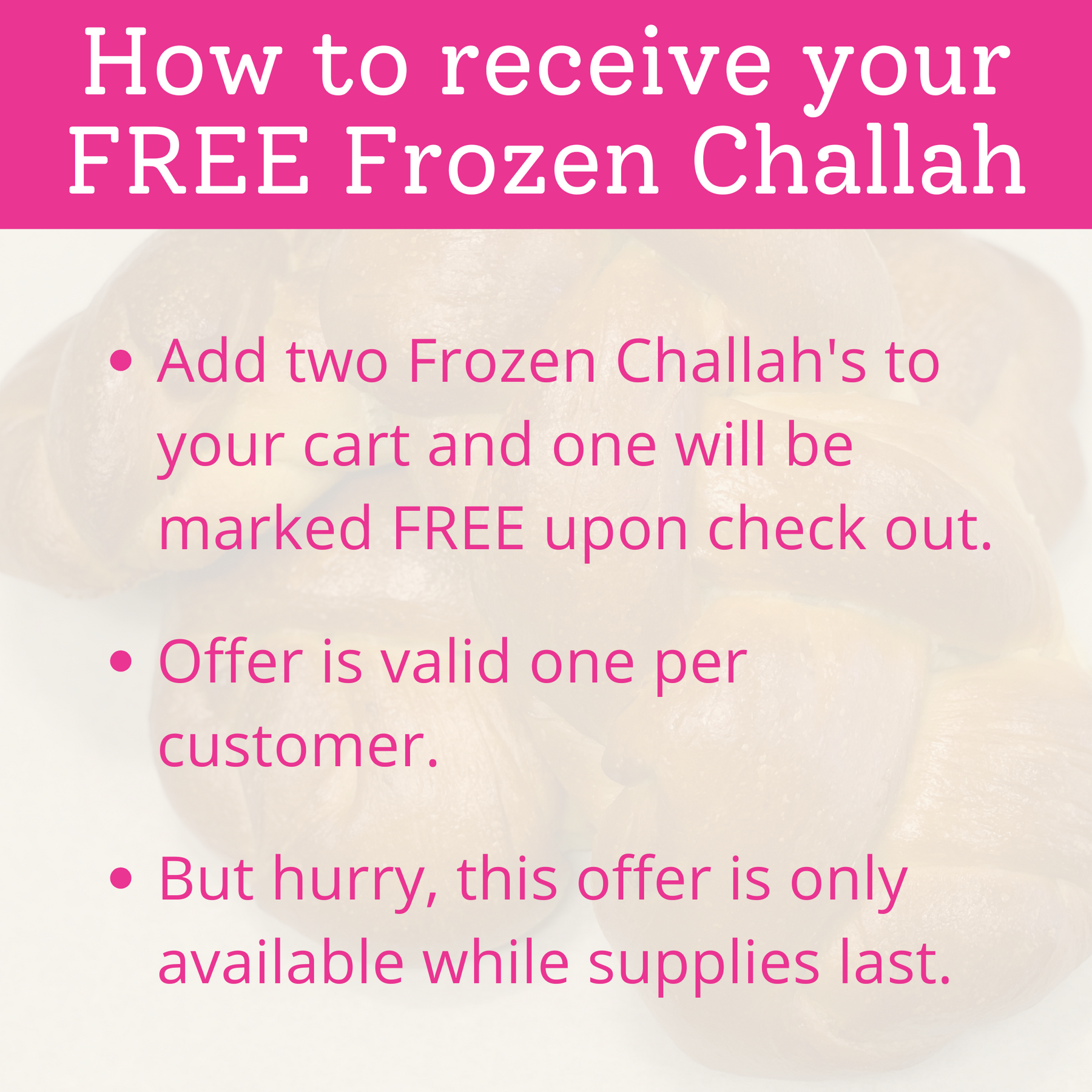 - We'll add you to our challah reservation list every Friday for the duration of your subscription.